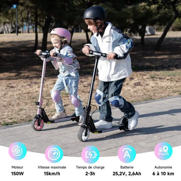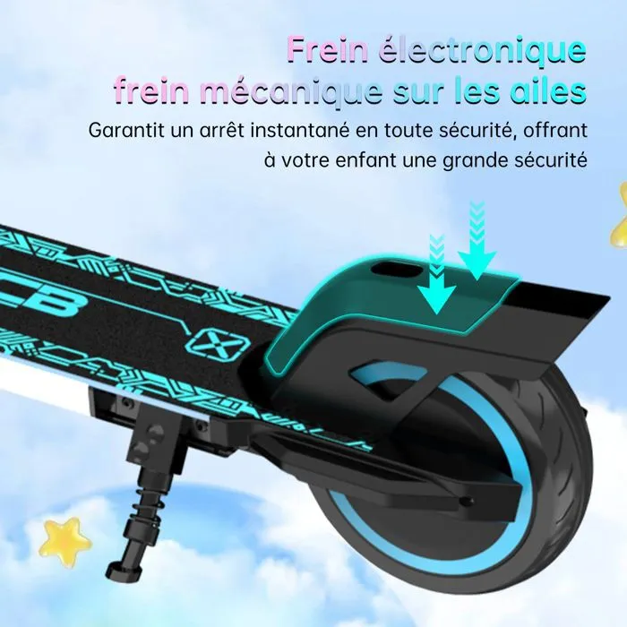 Équipée d’un moteur de 130W, cette trottinette offre trois vitesses réglables : 5 km/h, 10 km/h et 15 km/h. Elle convient aux jeunes utilisateurs souhaitant une conduite fluide et sécurisée.