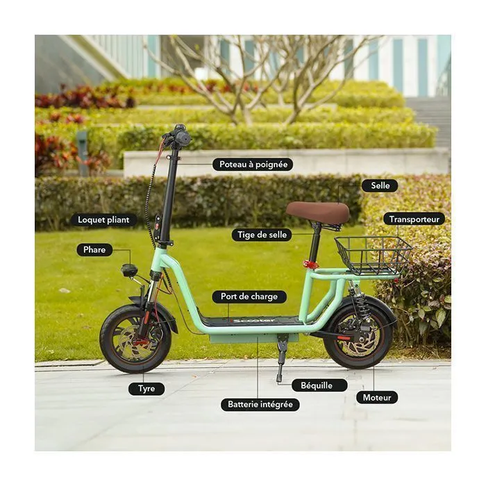 Le moteur du scooter électrique offre une puissance nominale de 500 watts, ce qui constitue une performance idéale pour les déplacements urbains. Cette puissance permet d’atteindre des vitesses adaptées à la circulation en ville tout en maintenant une bonne autonomie.