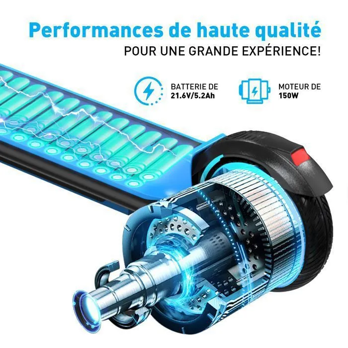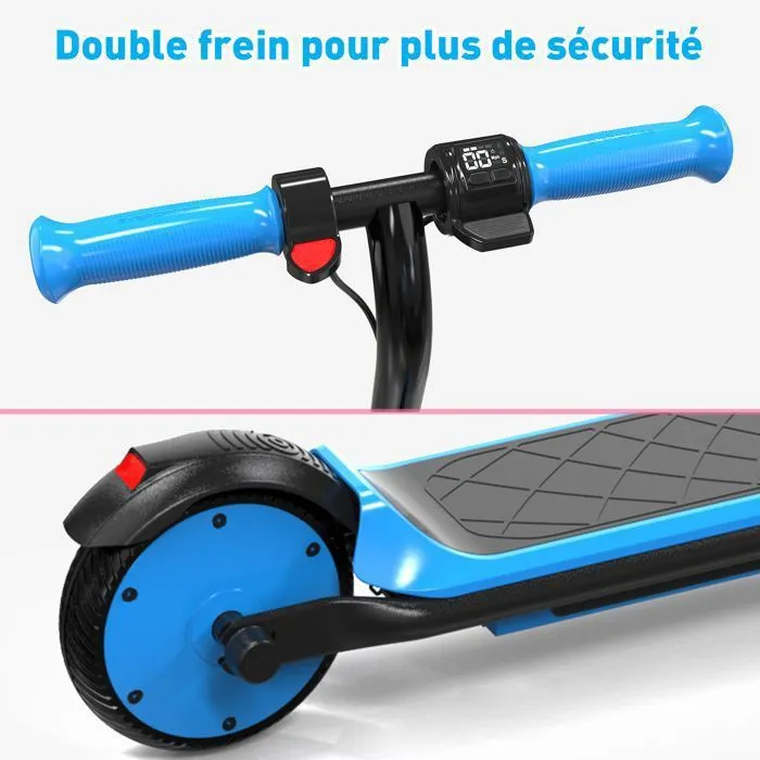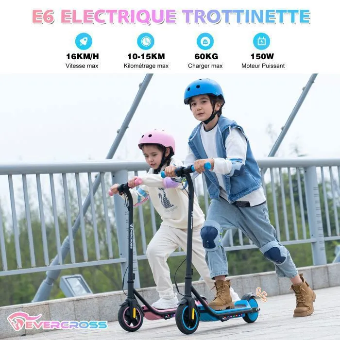 Trottinette Électrique pour Enfants EVERCROSS – 150W 21.6V/5.2Ah Avec écran 3 Mode de Vitesses 16km/h Vitesse Max 60KG Charger Max, Double Frein Pour les enfants 6+ Ans – E6 Blue