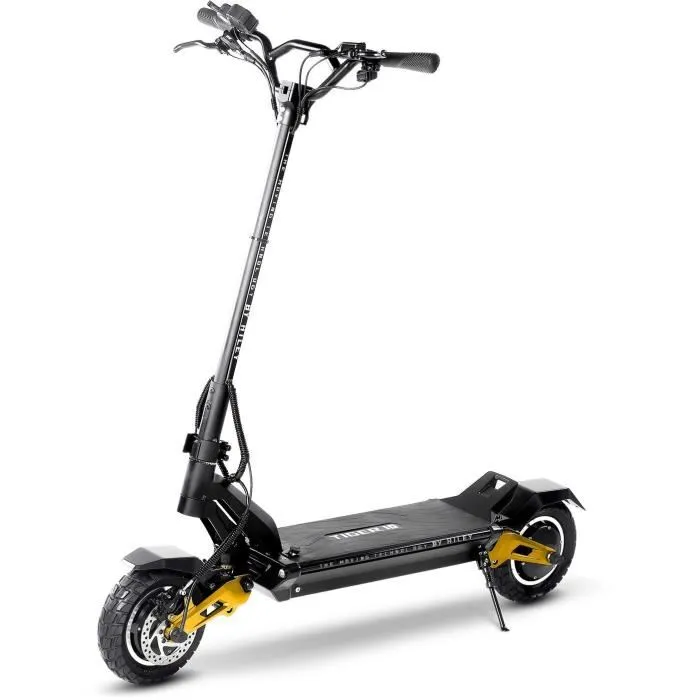 La série Hiley Tiger Pro est un concentré de technologie qui allie sécurité et confort !Un guidon bien équipéModule d’accélérateur avec affichage LED pour voir l’état de la batterie, la vitesse et le mode d’utilisation actuel. Les commandes ont été placées dans une position parfaitement naturelle et accessible.La possibilité de passer en mode monomoteur ou bimoteur vous permet de dompter ces puissants scooters