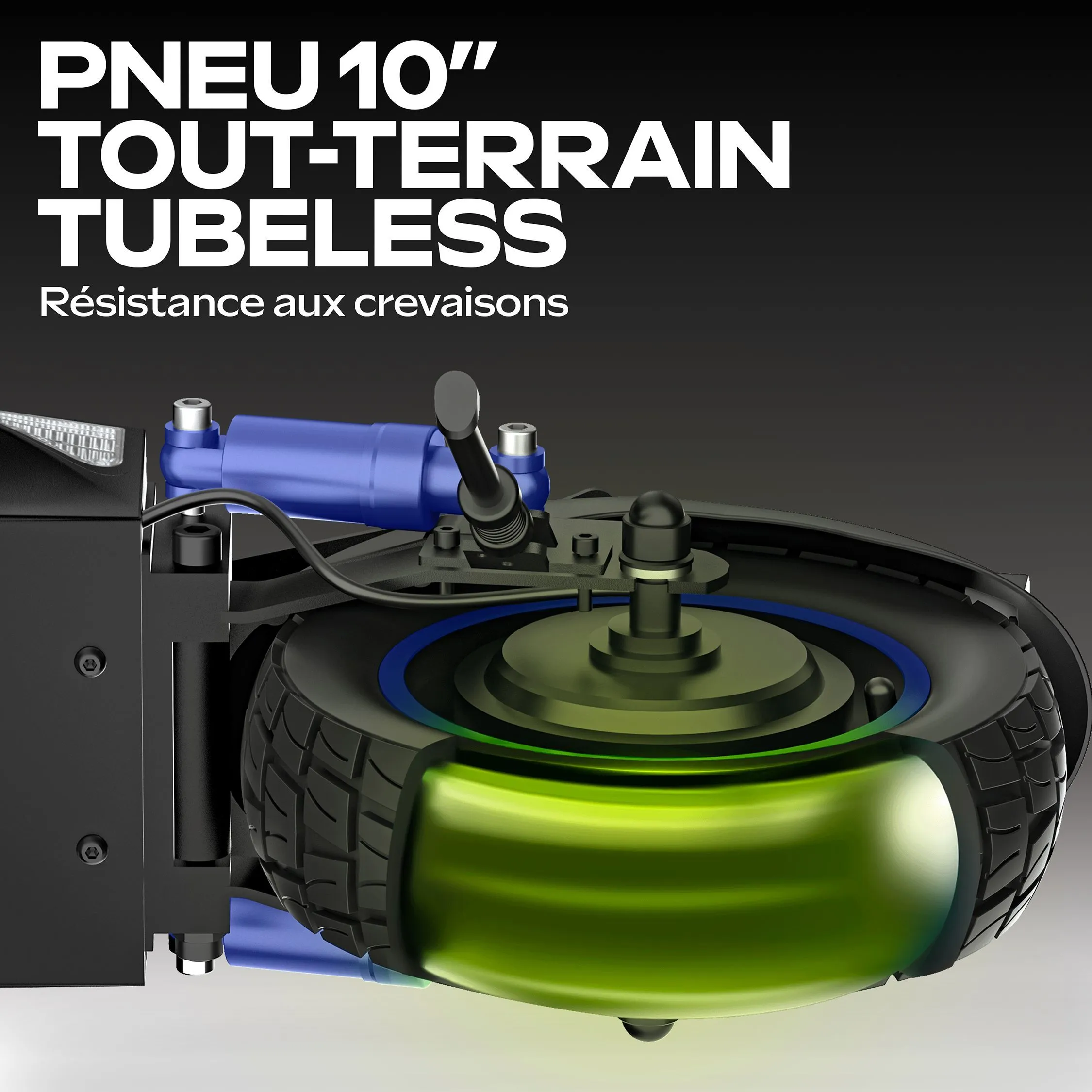 - Roues : 10 pouces tubeless tout-terrain