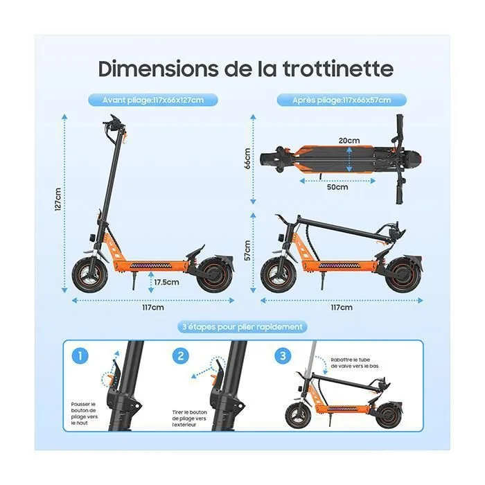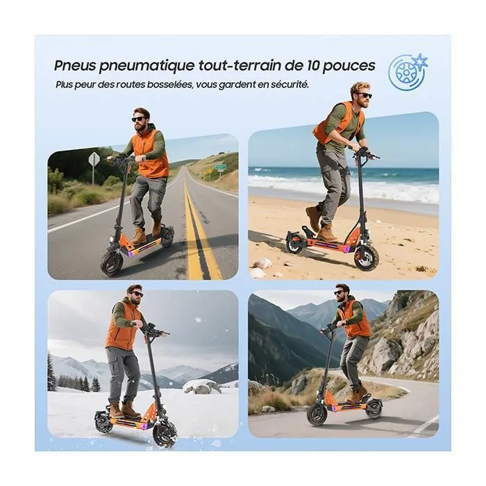 1000W Vitesse Max. 45km/h 4 Modes Autonomie 35-45km 48V13Ah Pneus 10 Pouces