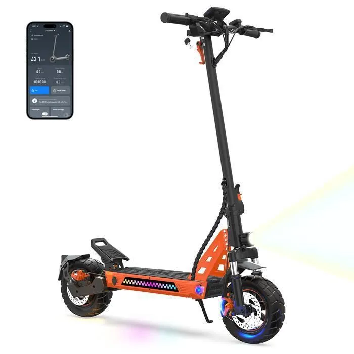 Système d’éclairage multicolore : TUNO NT3 offre une portée d’éclairage supérieure à celle des autres trottinettes électriques, pour une meilleure visibilité même la nuit.